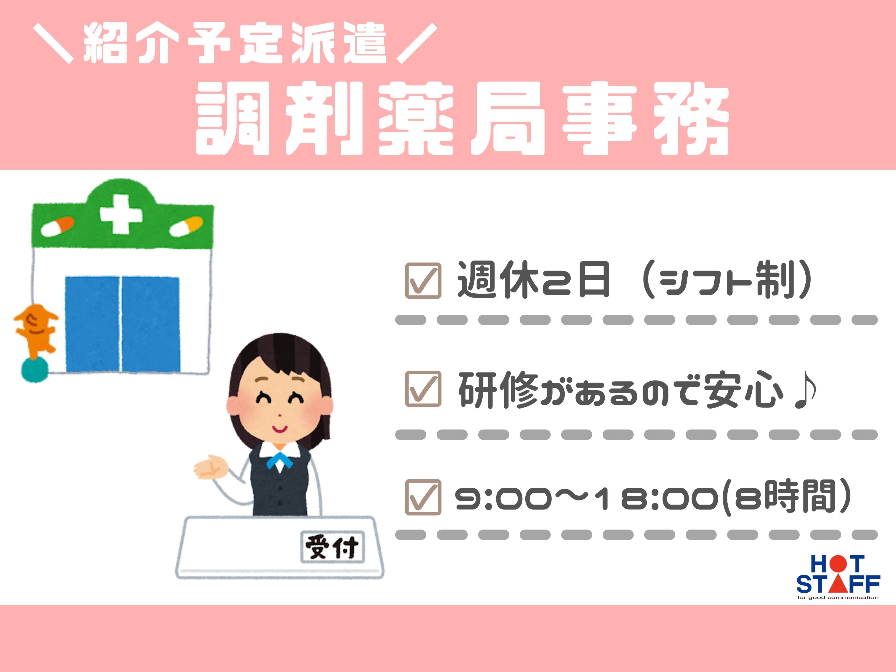 事務デビューで直接雇用を目指せる★/週休2日・シフト制/調剤薬局での事務スタッフ