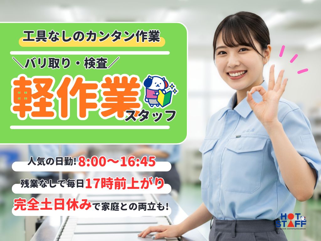 増員募集★積極採用中/日勤・土日休み・残業なし/かる~い♪プラ板のバリ取りや検査などの軽作業!
