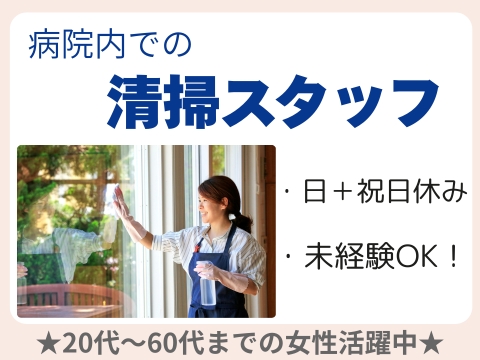 未経験からチャレンジ♪人気の16時上がり!/もくもく作業◎/病院内の待合スペースなどの清掃スタッフ!