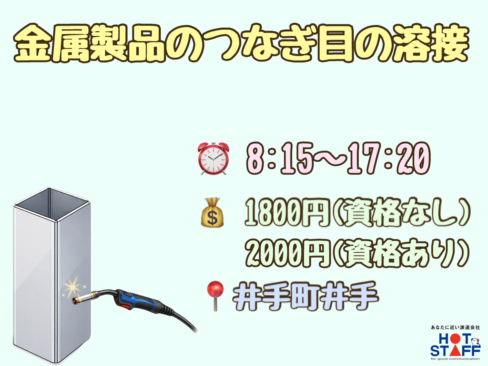 資格や経験が活かせる◎/高時給1800円・土日祝休み・駅チカ/金属製品のつなぎ目や底面の溶接作業☆