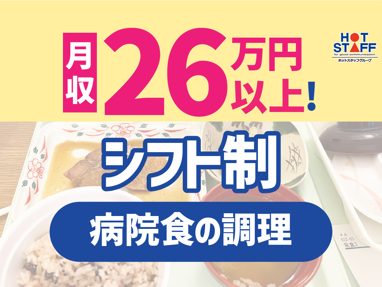 シフト制|希望休の提出・勤務日数の相談OK【病院内厨房の調理スタッフ】月収26万円以上◎