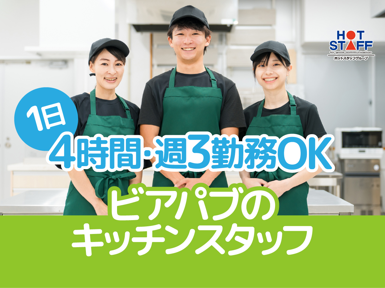 シフト制|1日4時間・週3日~勤務OK【ビアパブ!キッチンスタッフ】未経験OK!社割あり◎