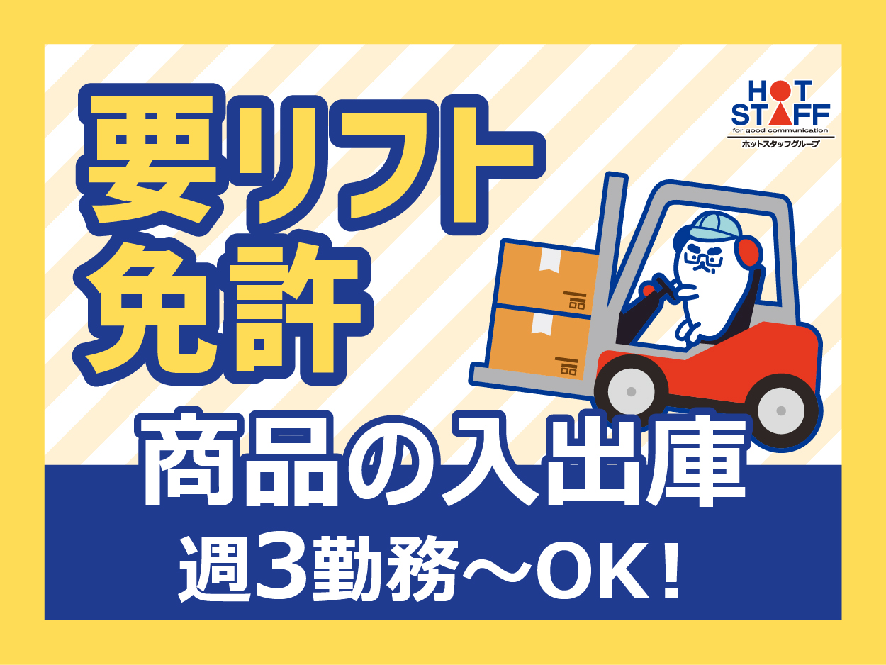 11:30~20:30|週3日~勤務OK【リーチリフト・食品の入出庫作業】リフト免許活かせる◎