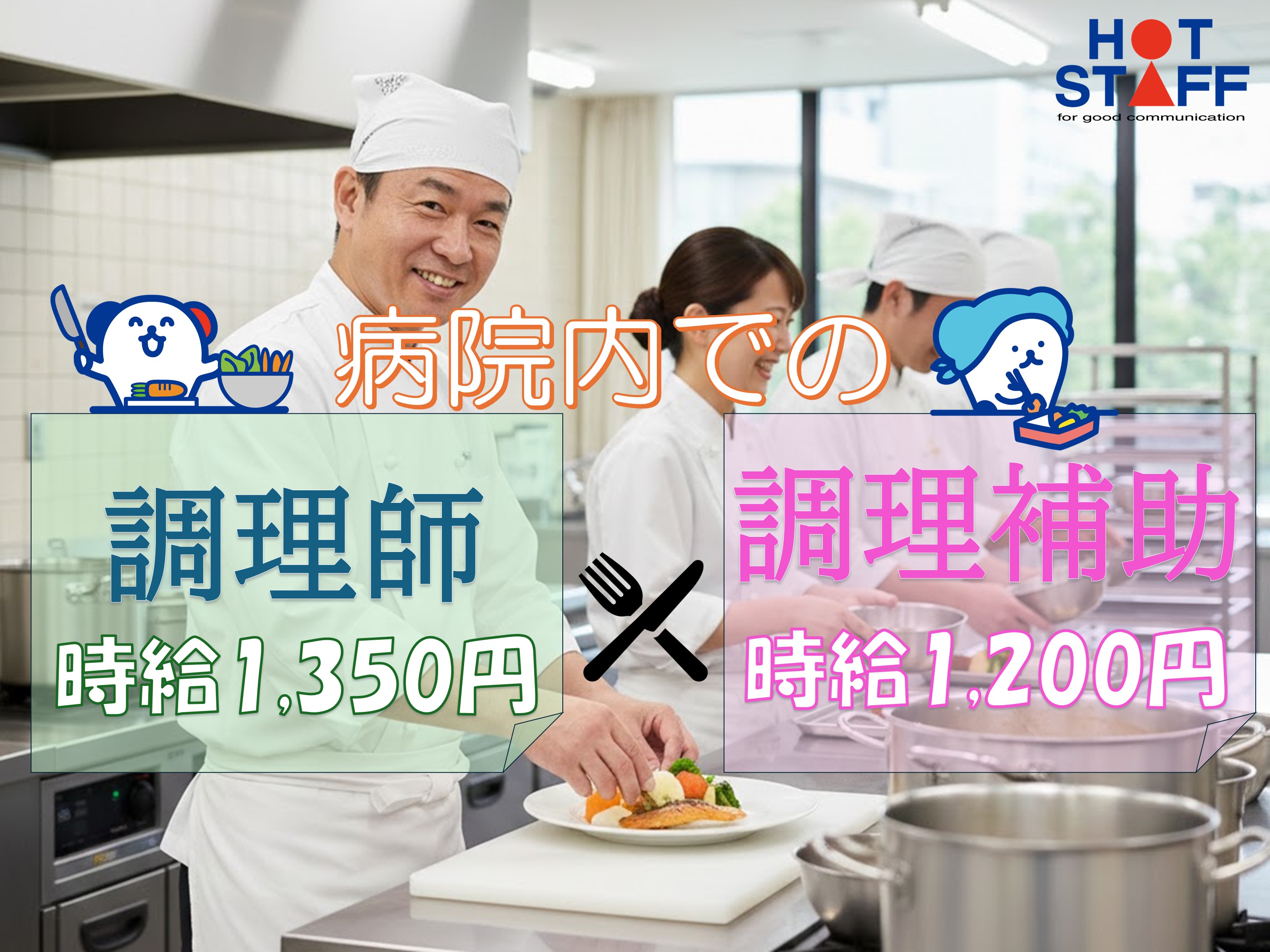 ・・・・・・・・・・・・・・・・・・・・・・・・・・・・・・・・・・・・・・・・ 【 調理師 】 時給 1,350円 月収例:1,350円×7時間15分×21日 =205,538円+交通費支給(規定あり) 【調理補助】時給 1,200円 月収例:1,200円×7時間15分×21日 =182,700円+交通費支給(規定あり) ・・・・・・・・・・・・・・・・・・・・・・・・・・・・・・・・・・・・・・・・ 「お給料前渡し制度」あり♪(※規定あり) 詳細はお仕事の担当者まで お気軽にお問い合わせください◎