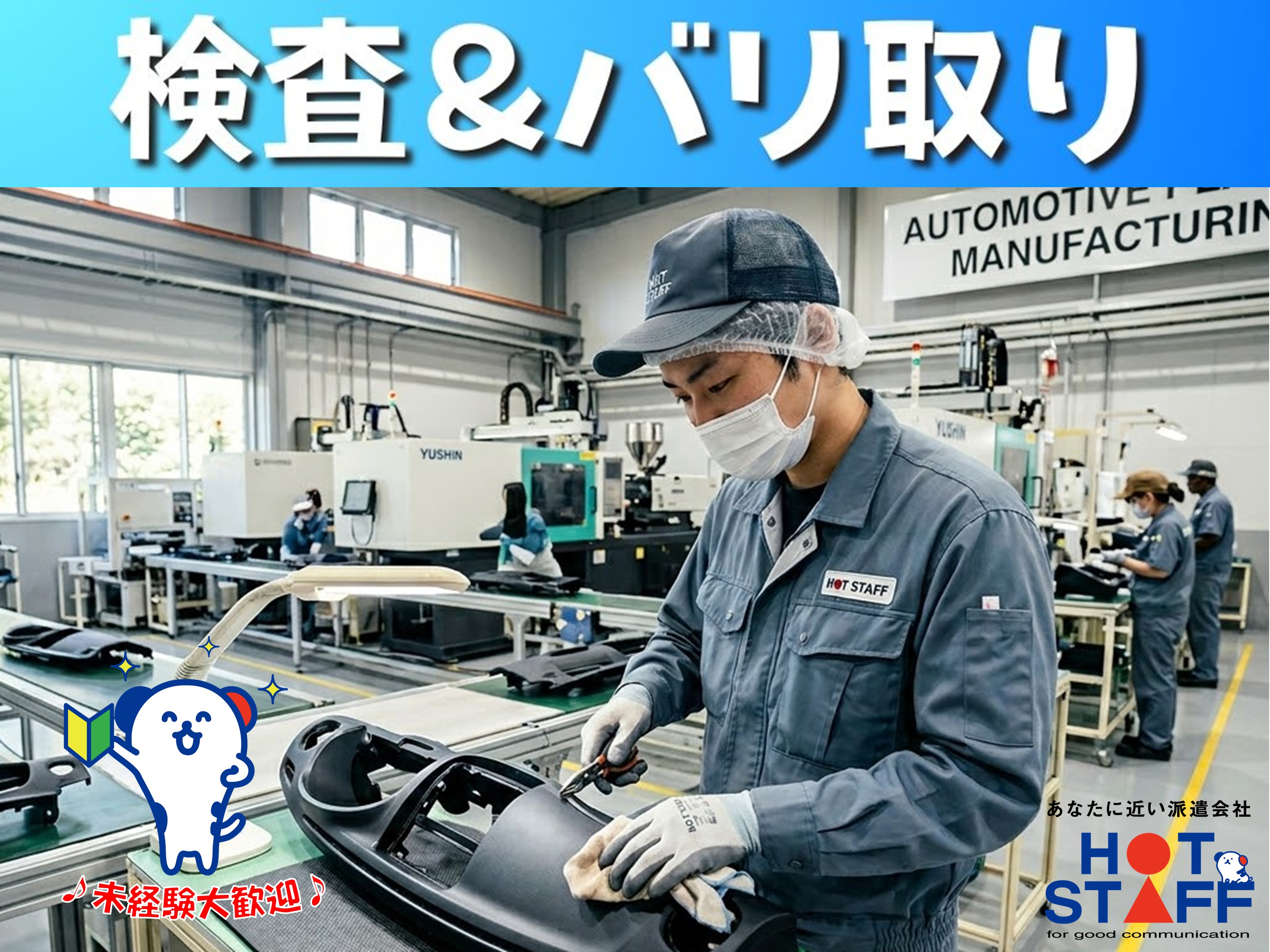 月収25万円以上/モクモク機械オペレーター★/2交替・土日休み/残業少なめ/自動車部品のバリ取り&目視検査/伊勢崎市