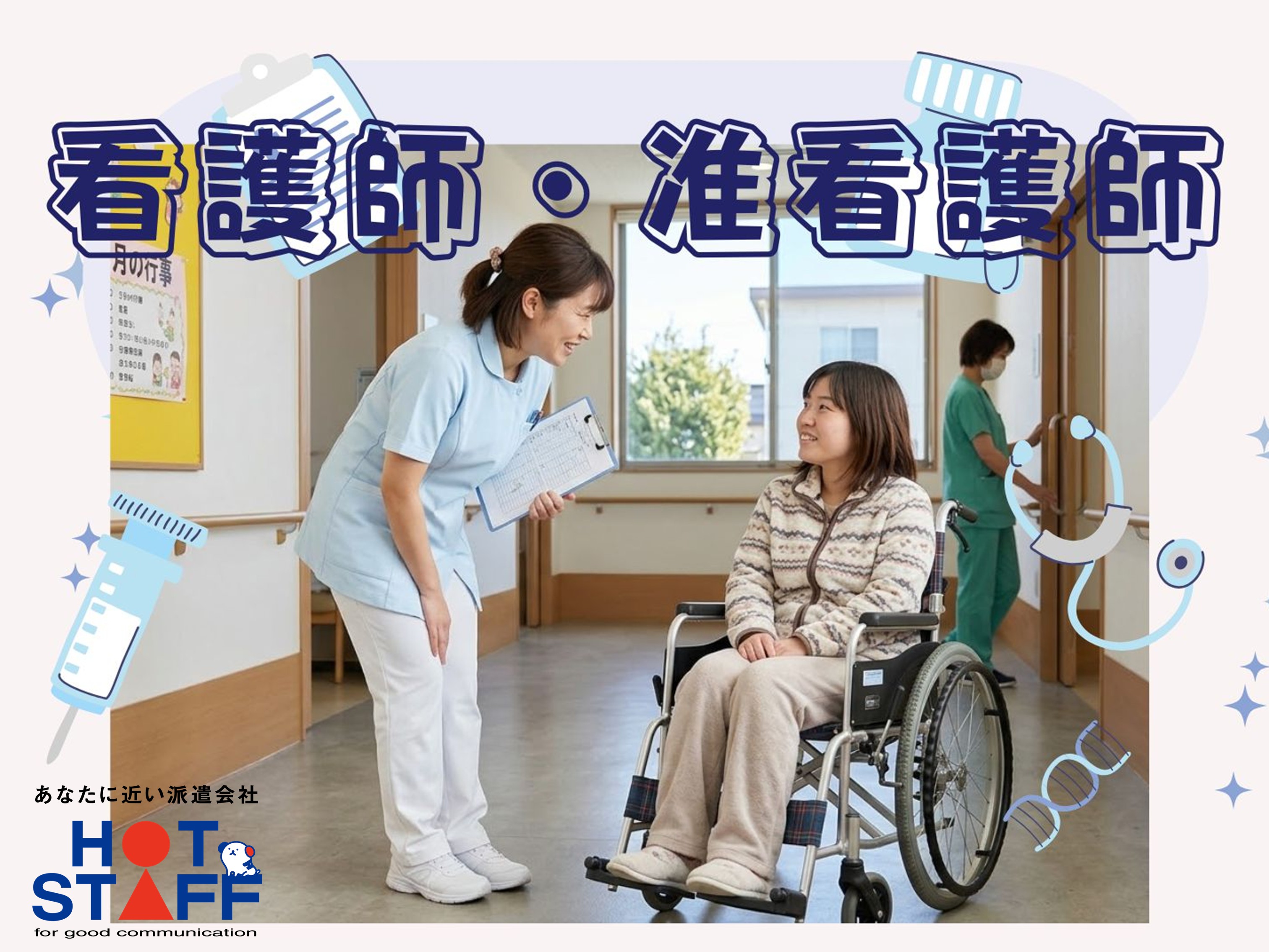 ・・・・・・・・・・・・・・・・・・・・・・・・・・・・・・・・・・・・・・・・ 【 看護師 】 時給 1,680円 月収例:1,680円×8時間×21日 =282,240円+交通費支給(規定あり) 【准看護師】時給 1,600円 月収例:1,600円×8時間×21日 =268,800円+交通費支給(規定あり) ・・・・・・・・・・・・・・・・・・・・・・・・・・・・・・・・・・・・・・・・ ▼「お給料前渡し制度」あり♪(※規定あり) 詳細はお仕事の担当者まで お気軽にお問い合わせください◎