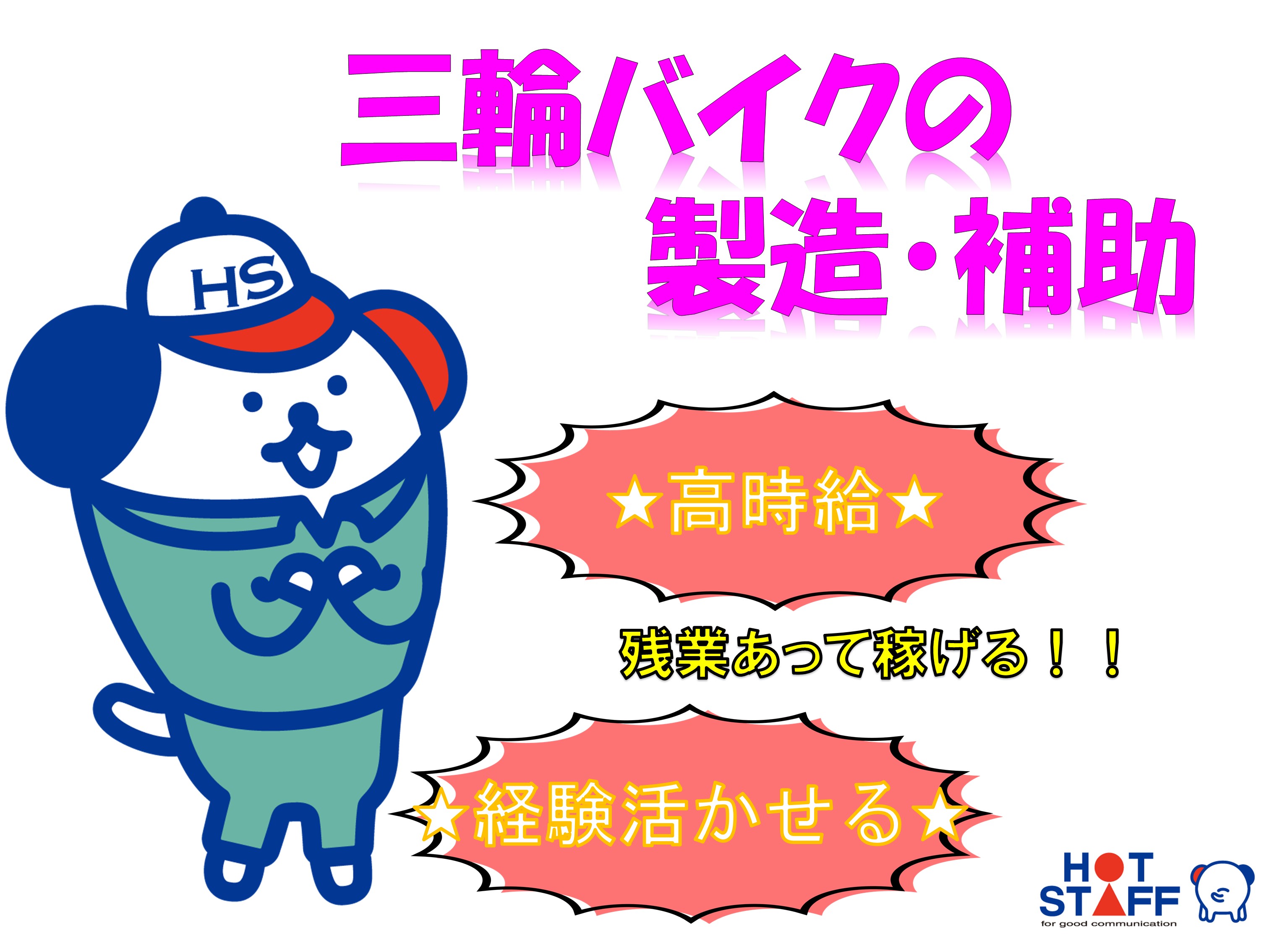 高時給★/経験者優遇♪/残業があって稼げる/三輪バイクの製造・補助/前橋市