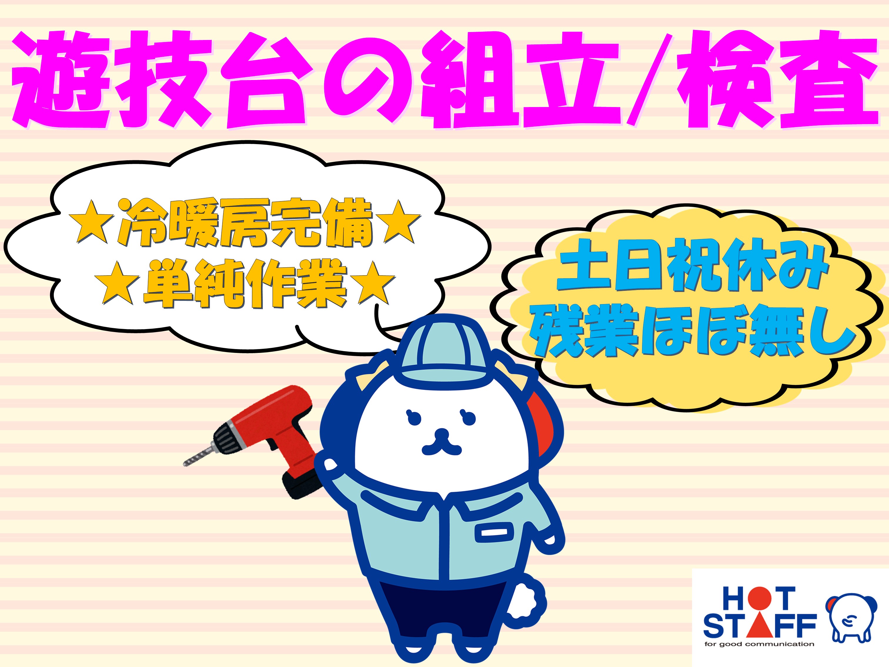 みどり市/遊技台の組立・検査/単純作業/土日祝休み/冷暖房完備