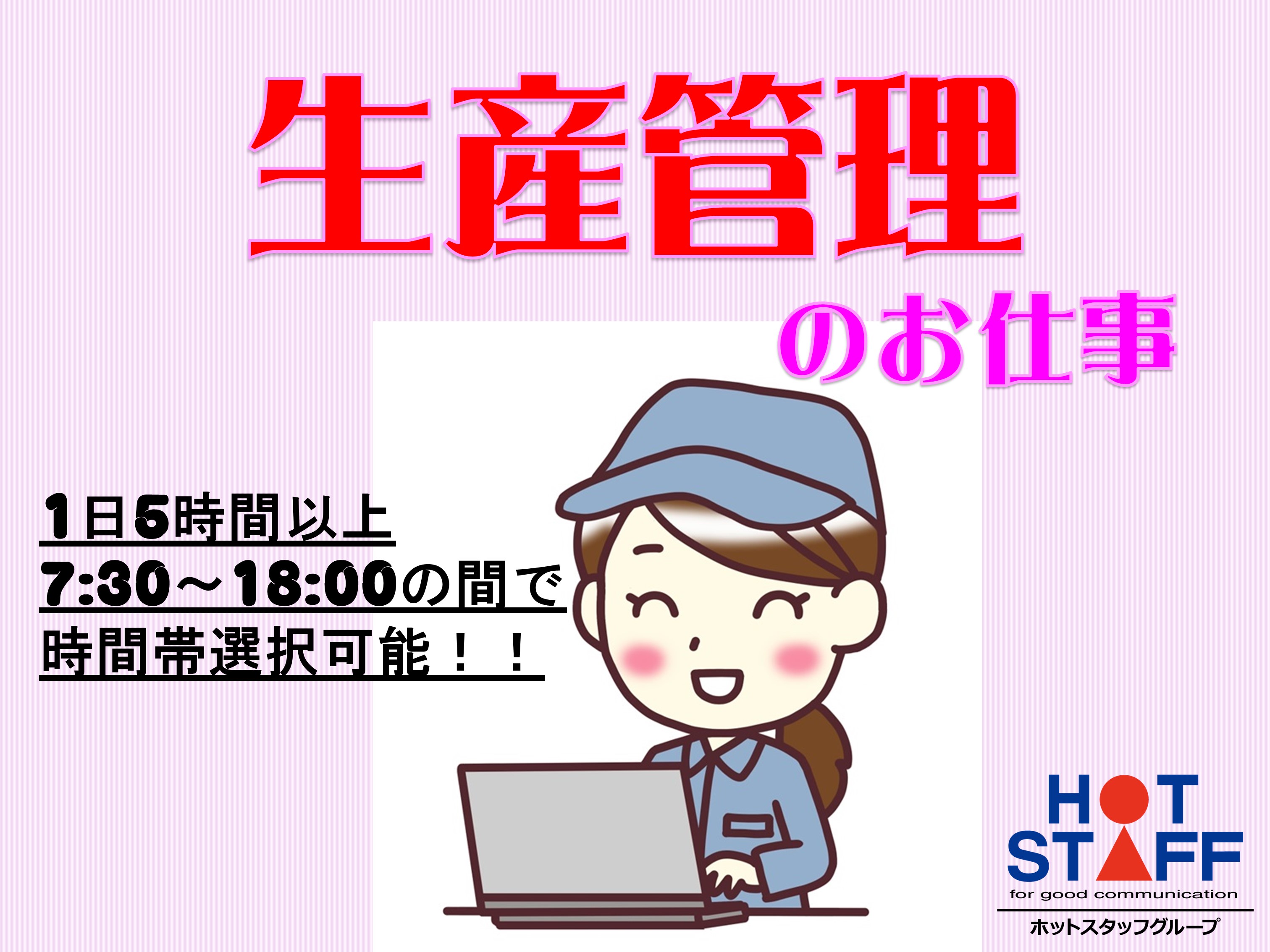 生産管理のお仕事★高時給★時間帯を選べる!平日休み!/残業なし◎/玉村町