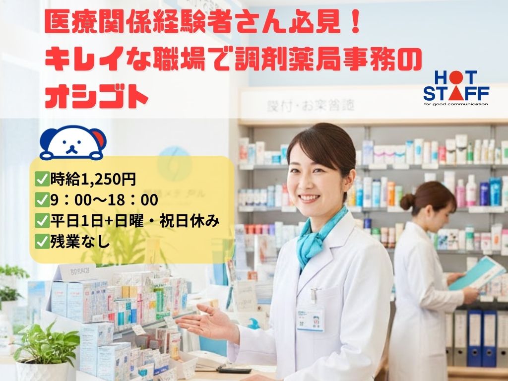 時給1250円/土曜出勤あり/経験必須/制服貸与/冷暖房完備/調剤薬局での医療事務・受付対応/太田市