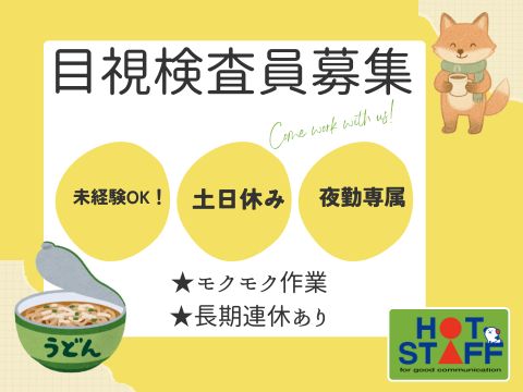 高時給/モクモク作業/未経験OK/土日休み/残業なし/夜勤/乾麺の製造ライン検査/館林市