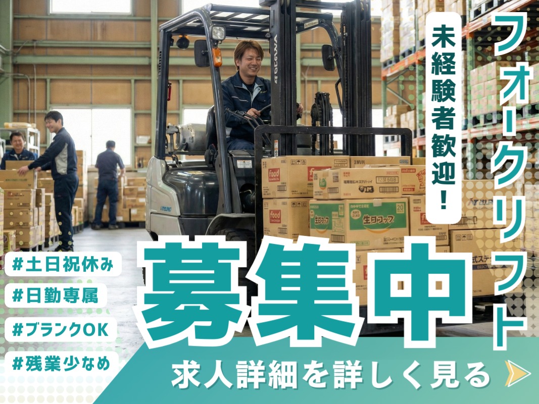 新規立ち上げ/高時給/簡単作業/未経験OK/土日休み/残業あり/2交替/太田市/フォークリフトを使用しての入庫・格納・出荷作業