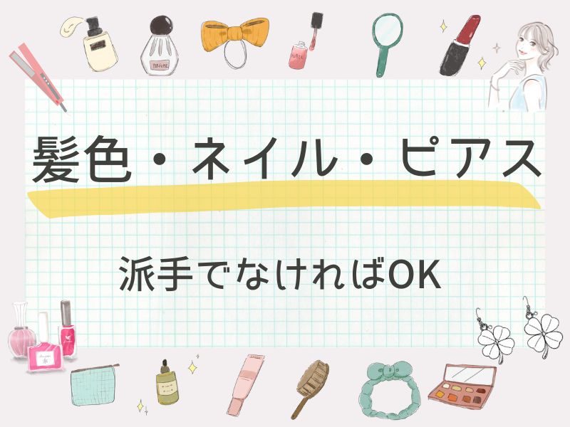 ・髪色・ネイル・ピアス・ヒゲ:自由