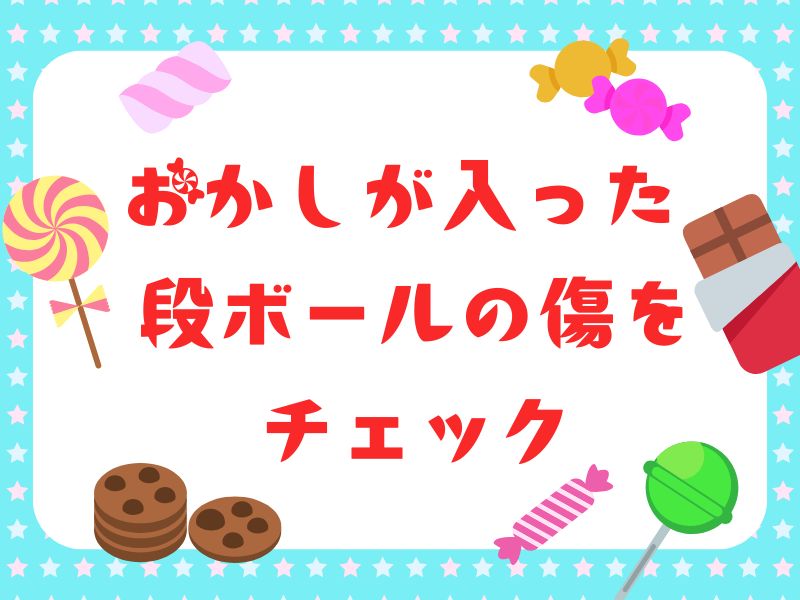 1)お菓子が入った段ボールがコンベアに流れてくるので