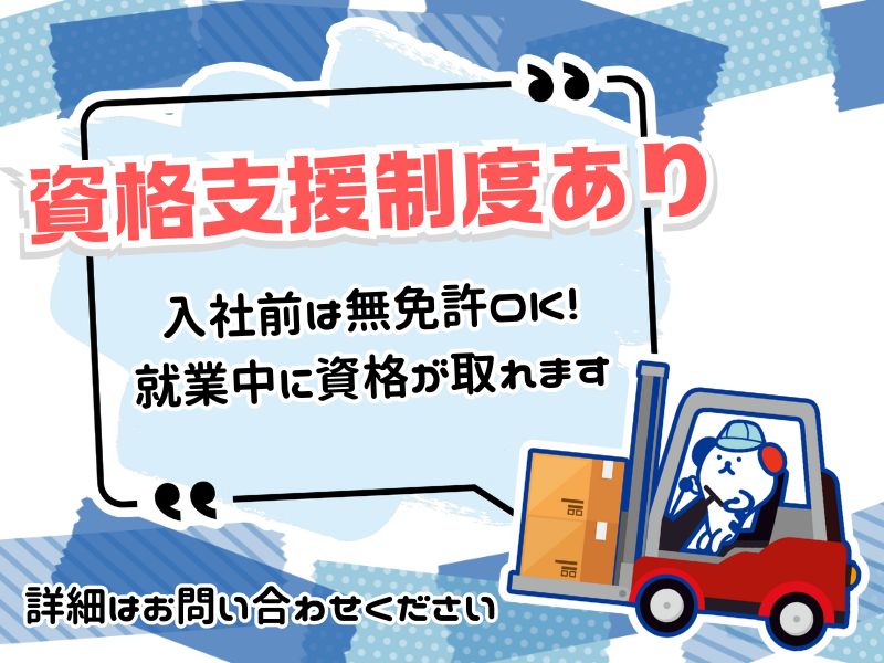 【久喜市】フォークリフト免許ある方時給アップ!/7:00~16:30/土日祝休み/日払い可(規)