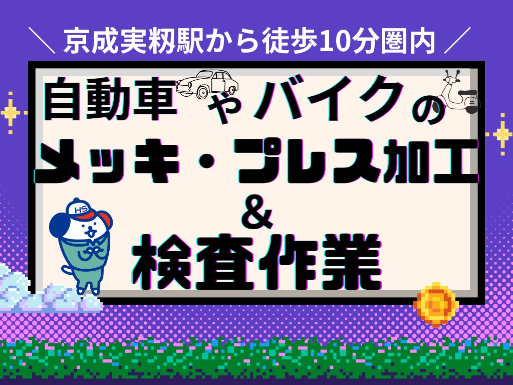 〈習志野市〉2交替制でガッツリ稼げる!自動車やバイクのメッキ・プレス加工&検査作業☆≪髪色・ピアス自由≫☆即日払い可能(規)