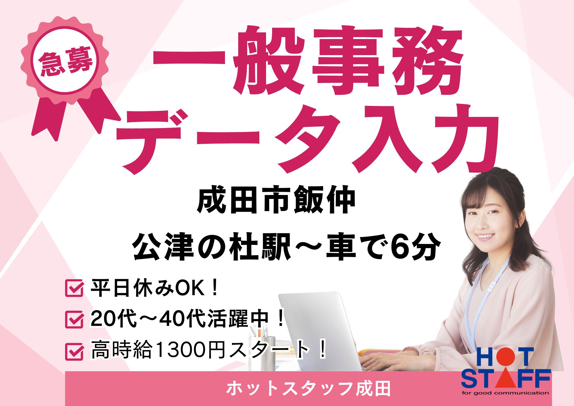 京成成田駅から無料送迎バスあり★土日休み/時給1350円~/ネイルOK/データ入力メインの事務スタッフ!