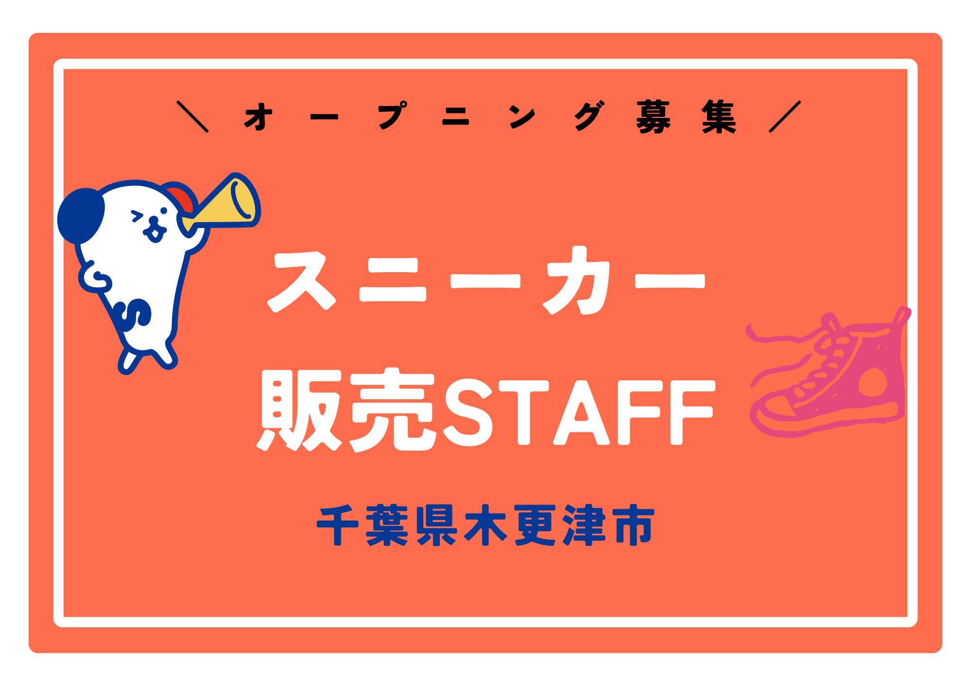 ≪木更津市≫◎オープニングスタッフ◎スニーカーの販売スタッフ★週3日~OK!/短時間相談OK!