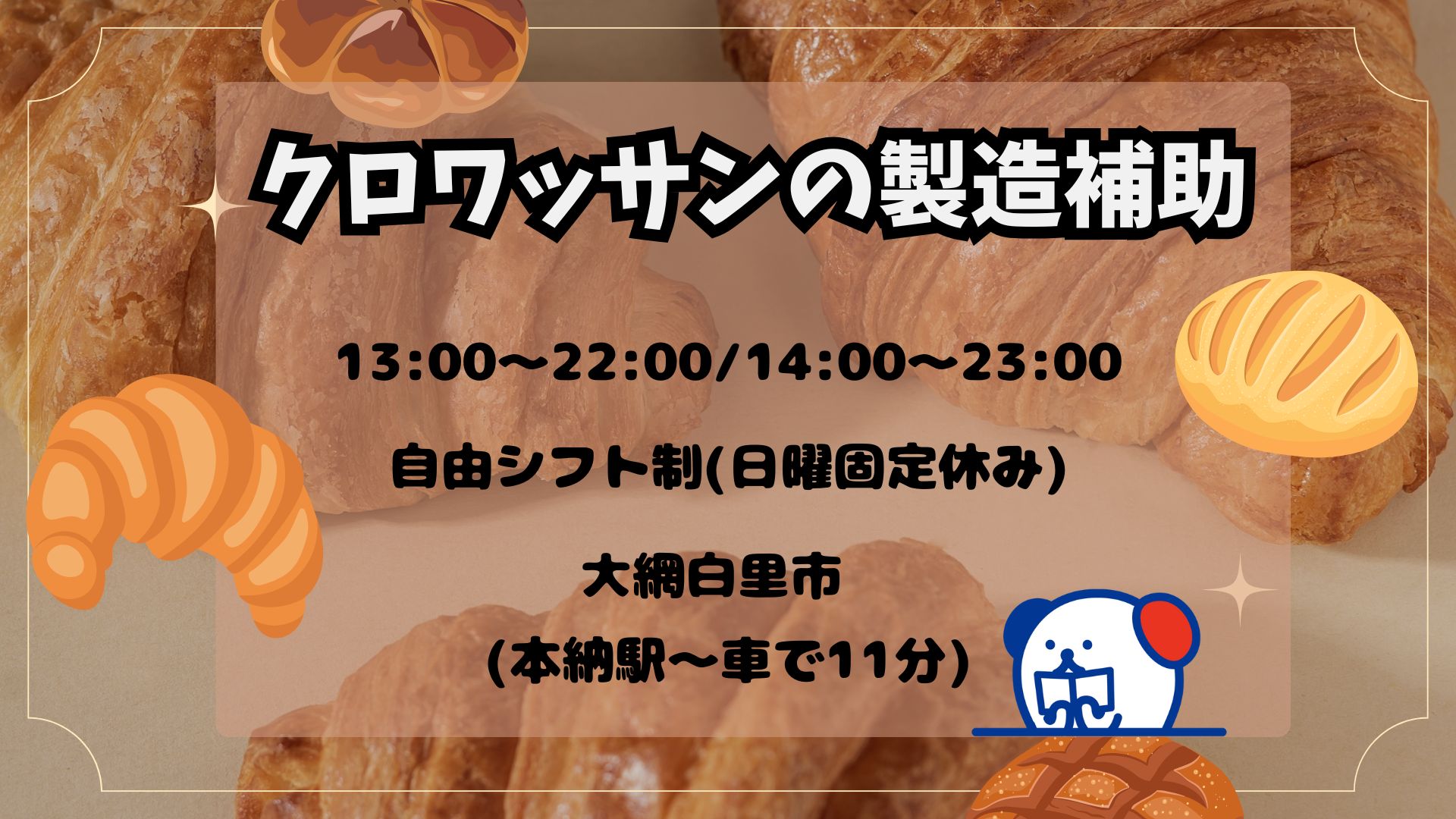 《大網白里市》シフト自由◎/朝ニガテさん必見♪午後スタートのクロワッサンの製造スタッフ★