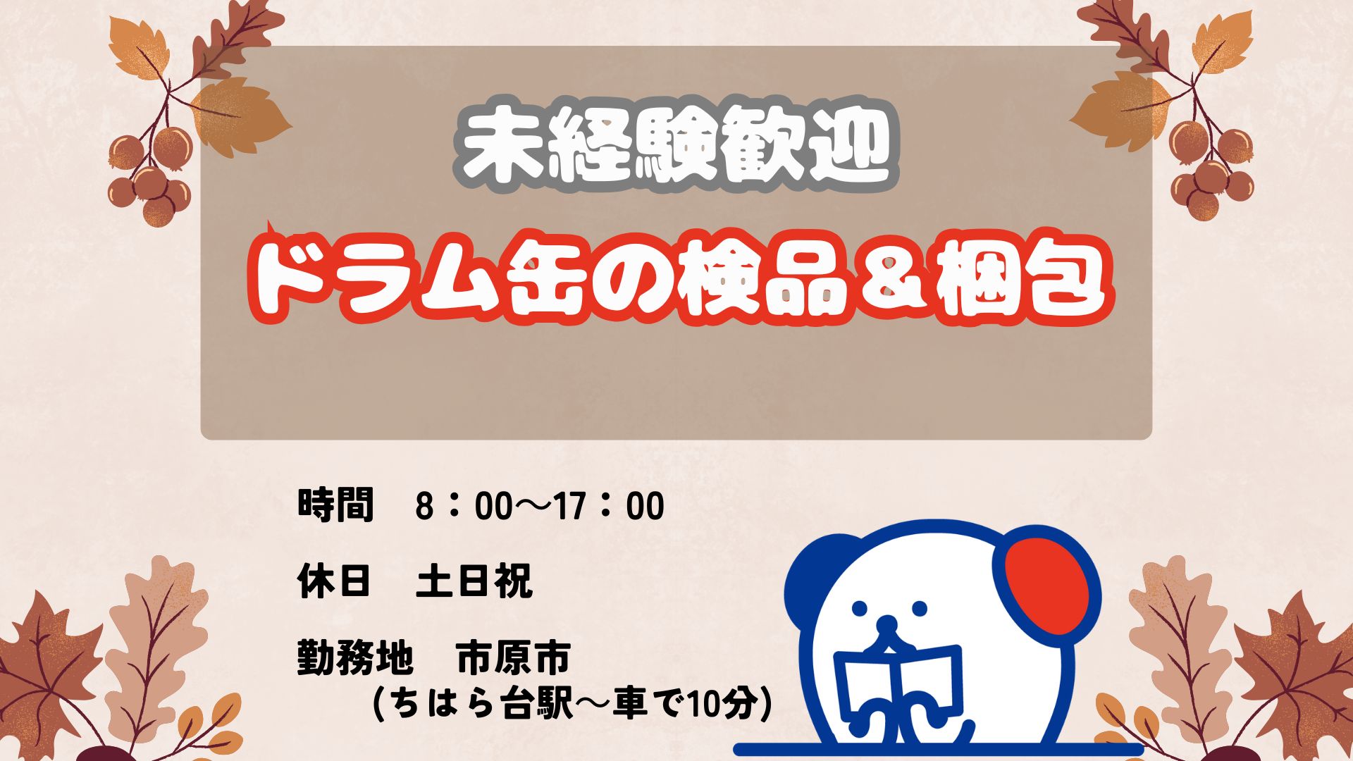 《市原市》シンプル作業/土日祝休み/車通勤OK♪/ドラム缶の検品&梱包作業スタッフ★重量物なし◎