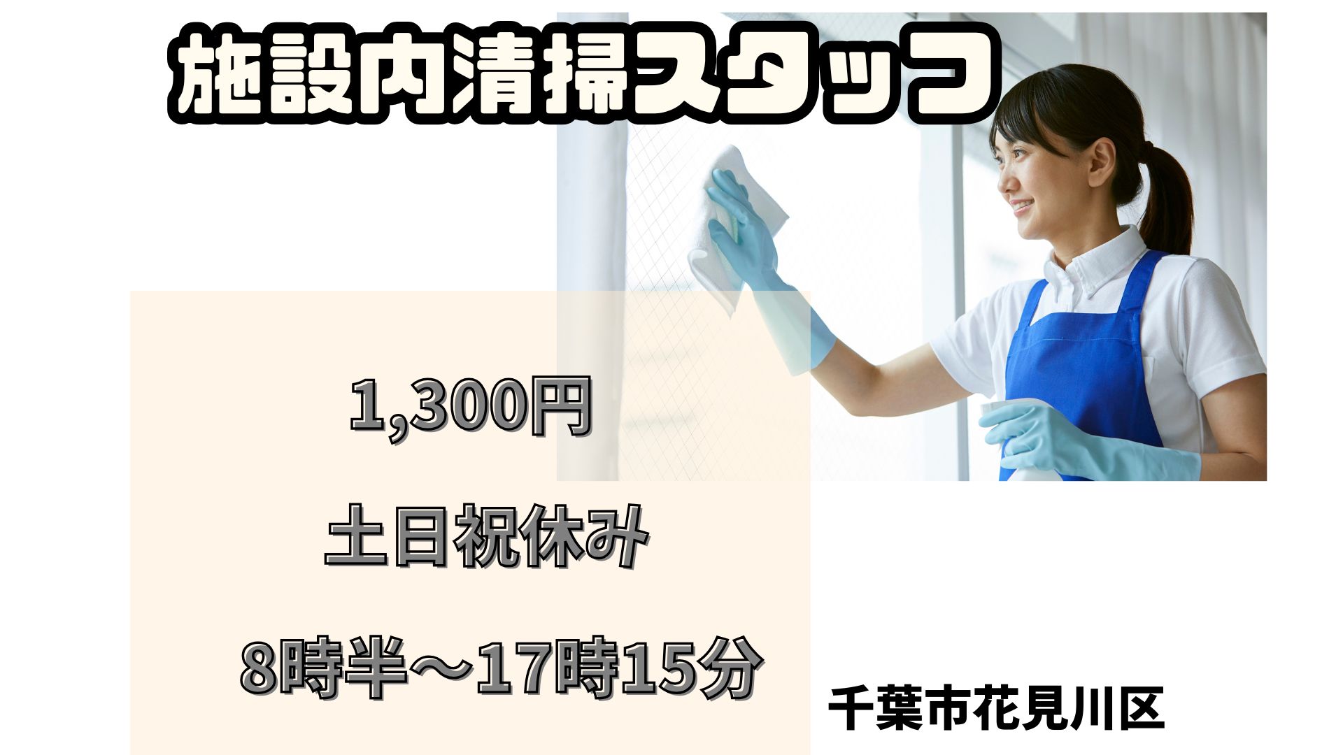《千葉市花見川区》未経験者歓迎♪/車通勤OK/土日祝休み/モクモクお仕事♪/施設内清掃staff