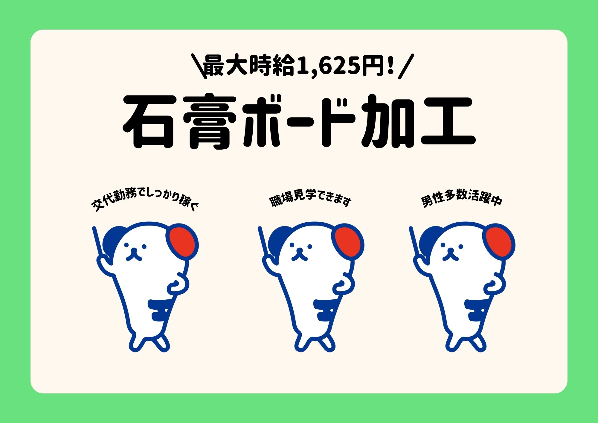 ●月収218,400円 ⇒時給1,300円×実働8時間×21日 ●交通費別途支給(規定あり) ●実働8時間以降の時給:1,625円 《日払い・即払い・週払い》 「急にお金が欲しい!!」そんな時の救済制度★ 勤務実績が分かるタイムシートと希望金額をメールで送るだけで 最短当日に受け取り可能! ※規定についてはお気軽にお問い合わせください◎