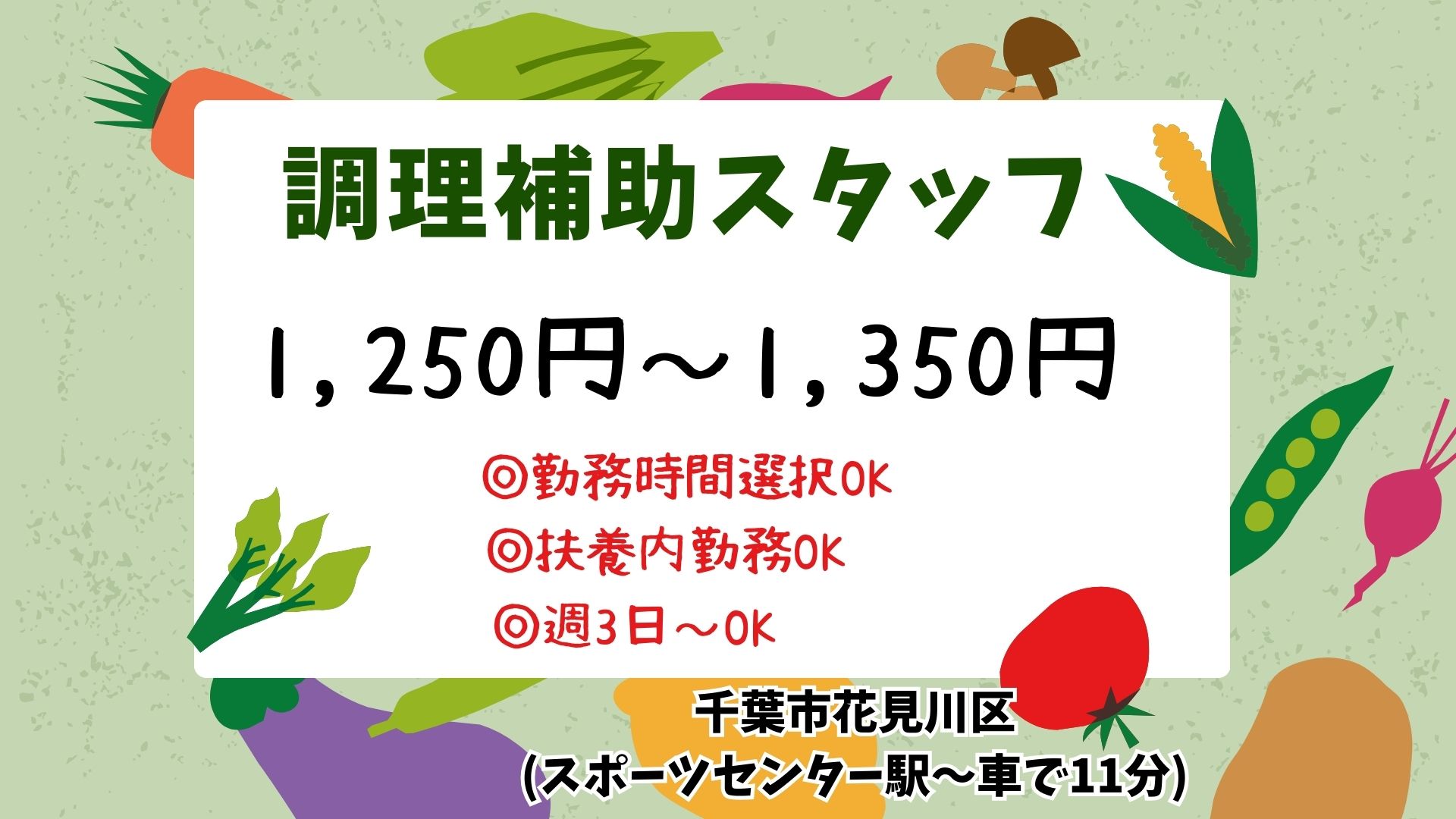 ≪千葉市花見川区≫未経験OK!/選べる時間◎/週3日~OK/有料老人ホームでの料理サポートスタッフ