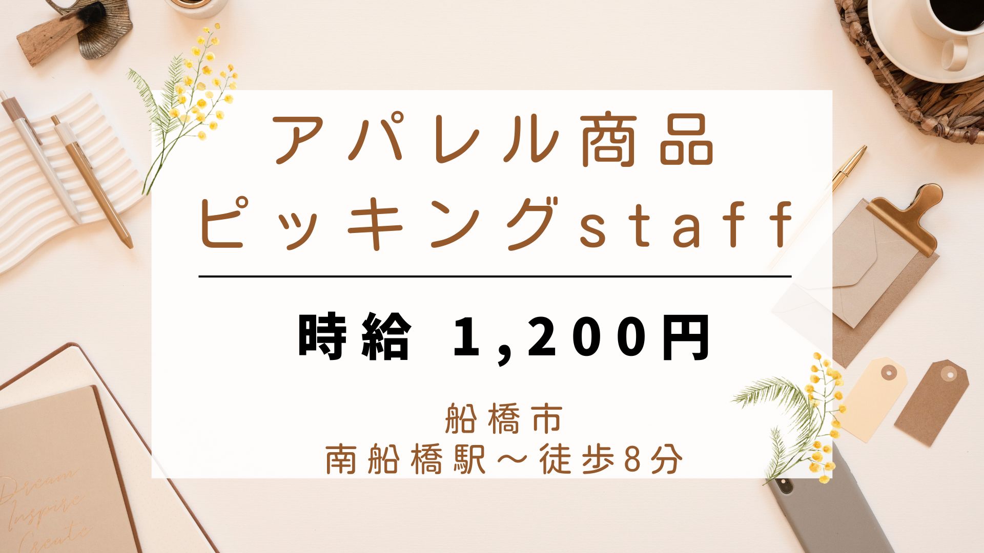 ≪船橋市≫駅チカ勤務地◎/週3日~相談OK/オシャレな休憩室♪/土日祝休み/アパレル商品のピッキング