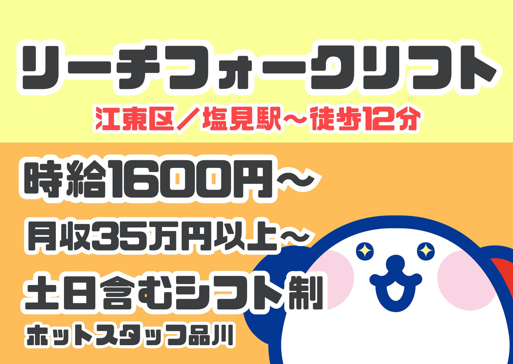 【青物横丁駅~送迎バスあり】ほぼ乗りっぱなし!土日祝休み!チルド倉庫でカウンターフォークリフト作業員!<即日勤務OK>