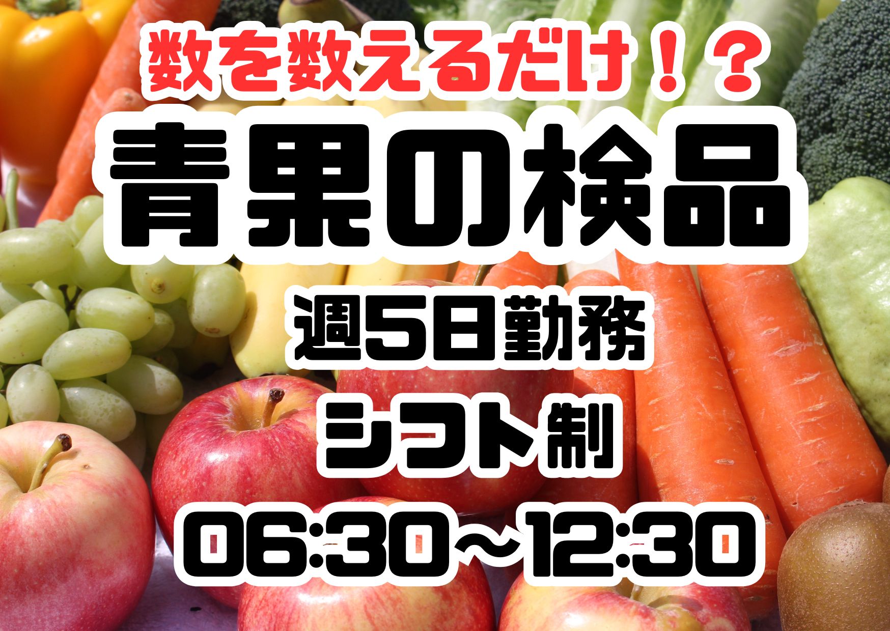 【ラクラク簡単軽作業】個数をチェック!野菜や果物の検品作業!<未経験OK!急募!平日休みOK!>