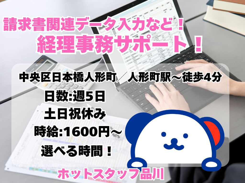 【週5日/土日祝休み/短い時間相談OK】請求関連データ入力や請求書発行などの経理事務サポート!