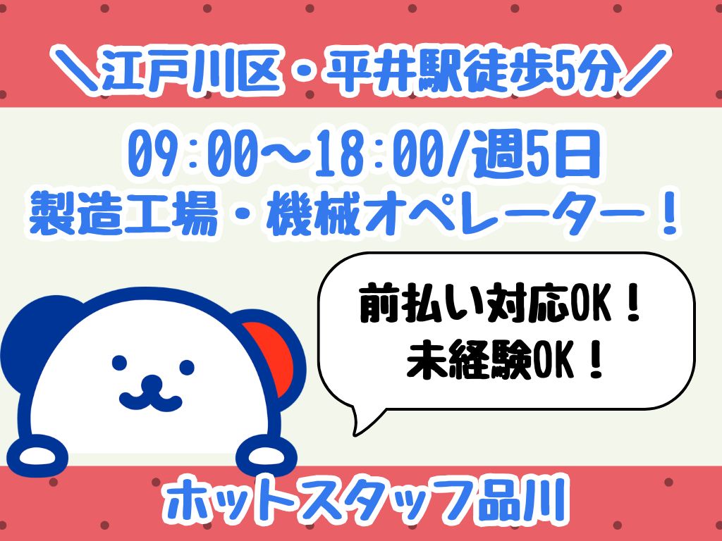 【重量なし/週5日/土日祝休み/日勤のみ】機械にセットしてボタンを押すだけ!機械部品の工場で機械オペレーター!
