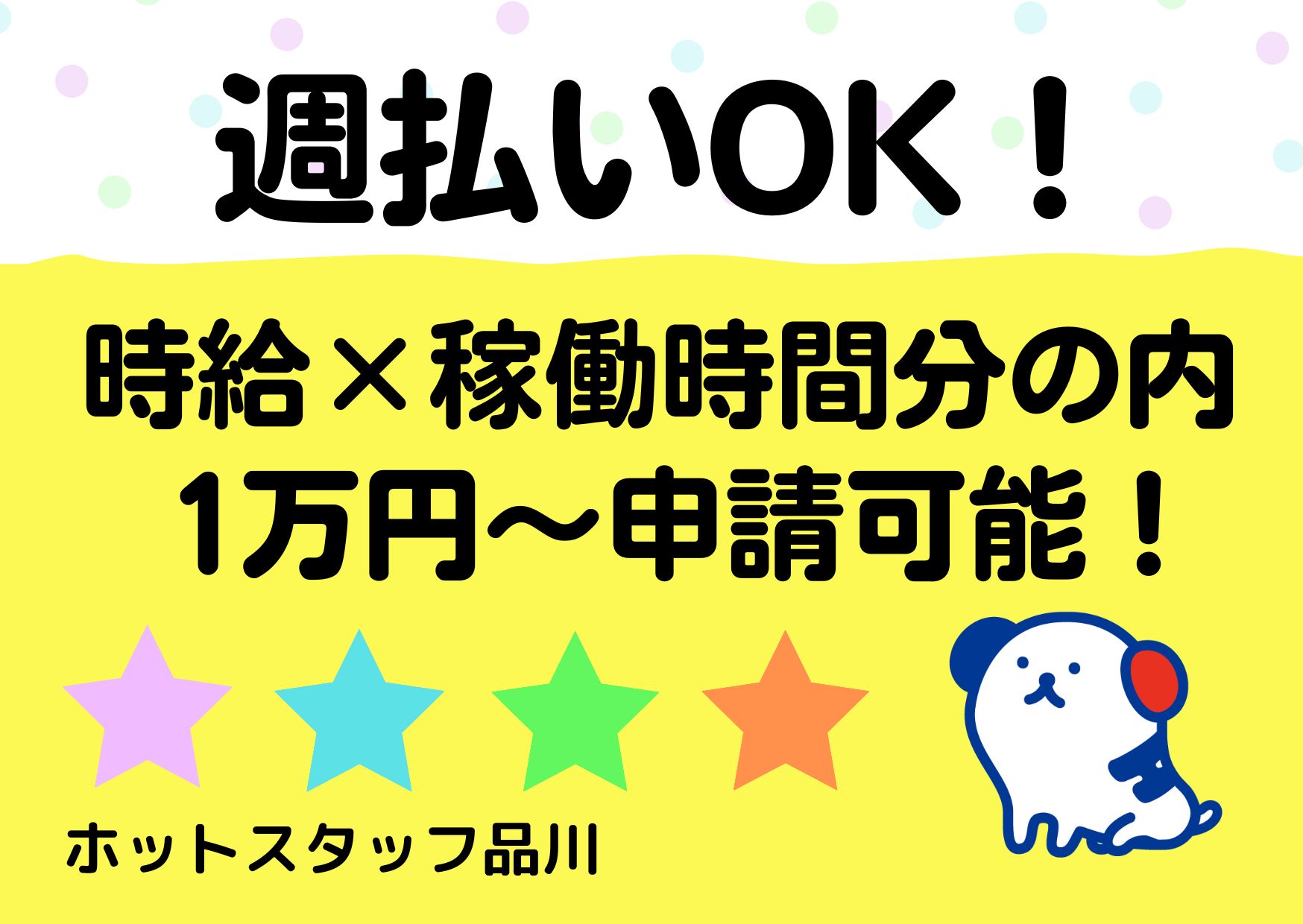 働いた分の内1万円単位での前渡し(前払い)が可能♪