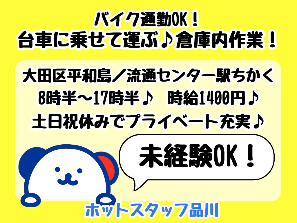 勤務地東京都大田区平和島 〇大森駅~バイク10分