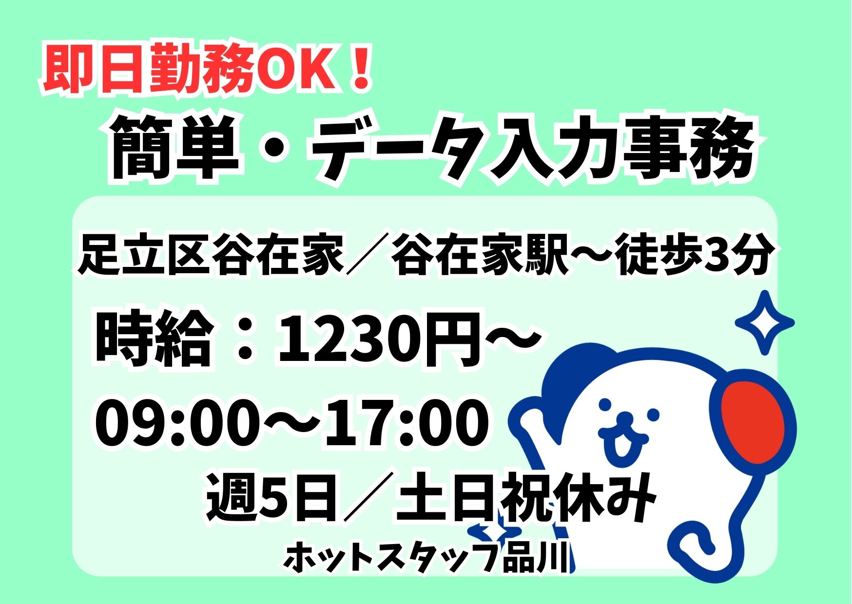 【電話対応なし】週5日/土日祝休み/実働7時間!伝票作成など!簡単データ入力事務!〈入力出来ればOK〉