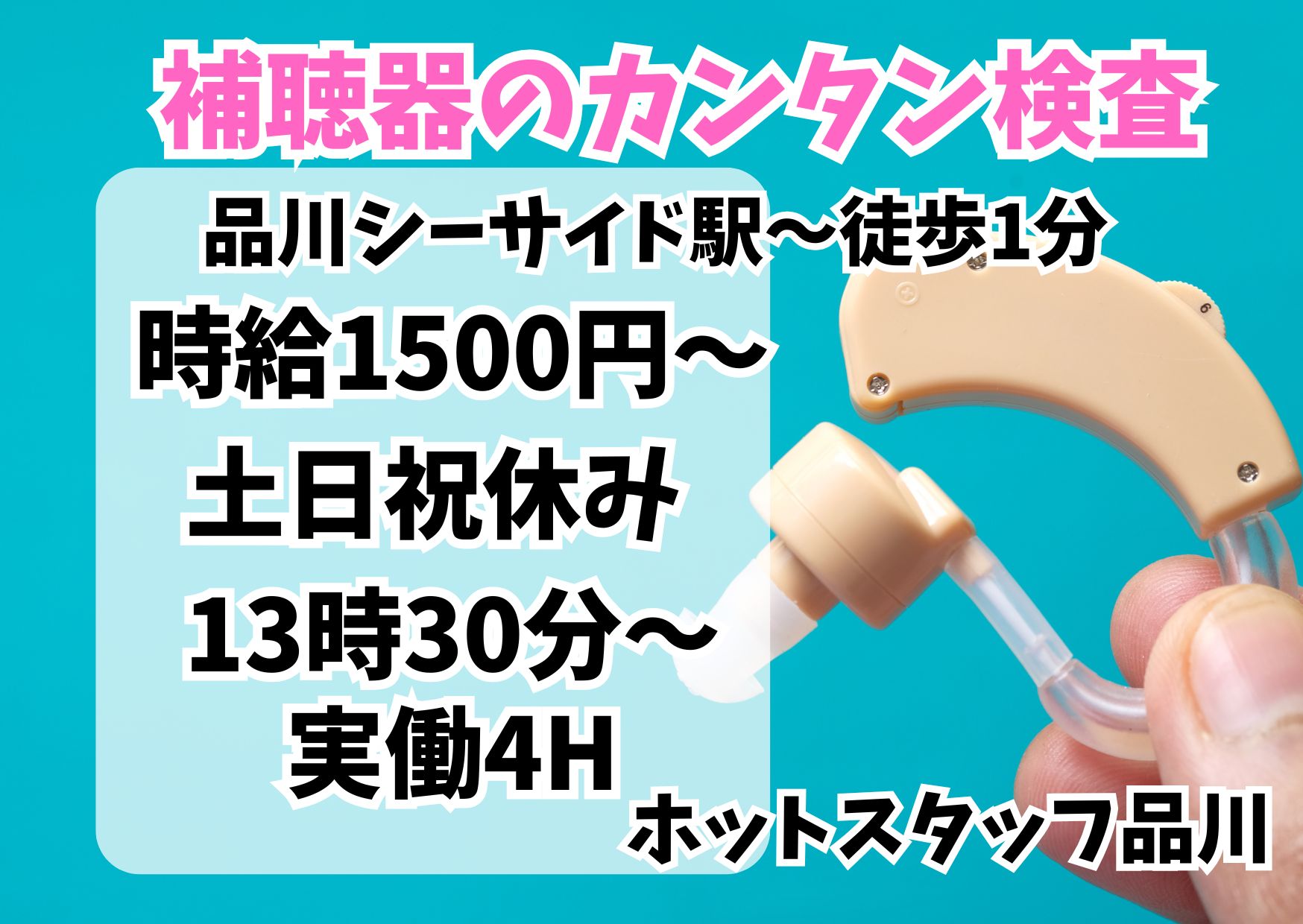 【座り作業×重量なし】13時30分~実働4時間×週5日!土日祝休み!補聴器の検品作業!<品川シーサイド駅すぐ!>