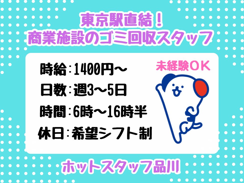 ◆週3日~週5日希望シフト制/たくさん歩きます◆東京駅直結!商業施設のゴミ回収!<未経験OK>