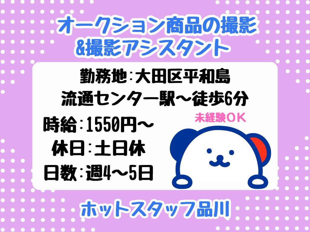 【週4日~週5日/土日休み/実働7時間or8時間】かばんなど!ブランド商品の撮影スタッフ!