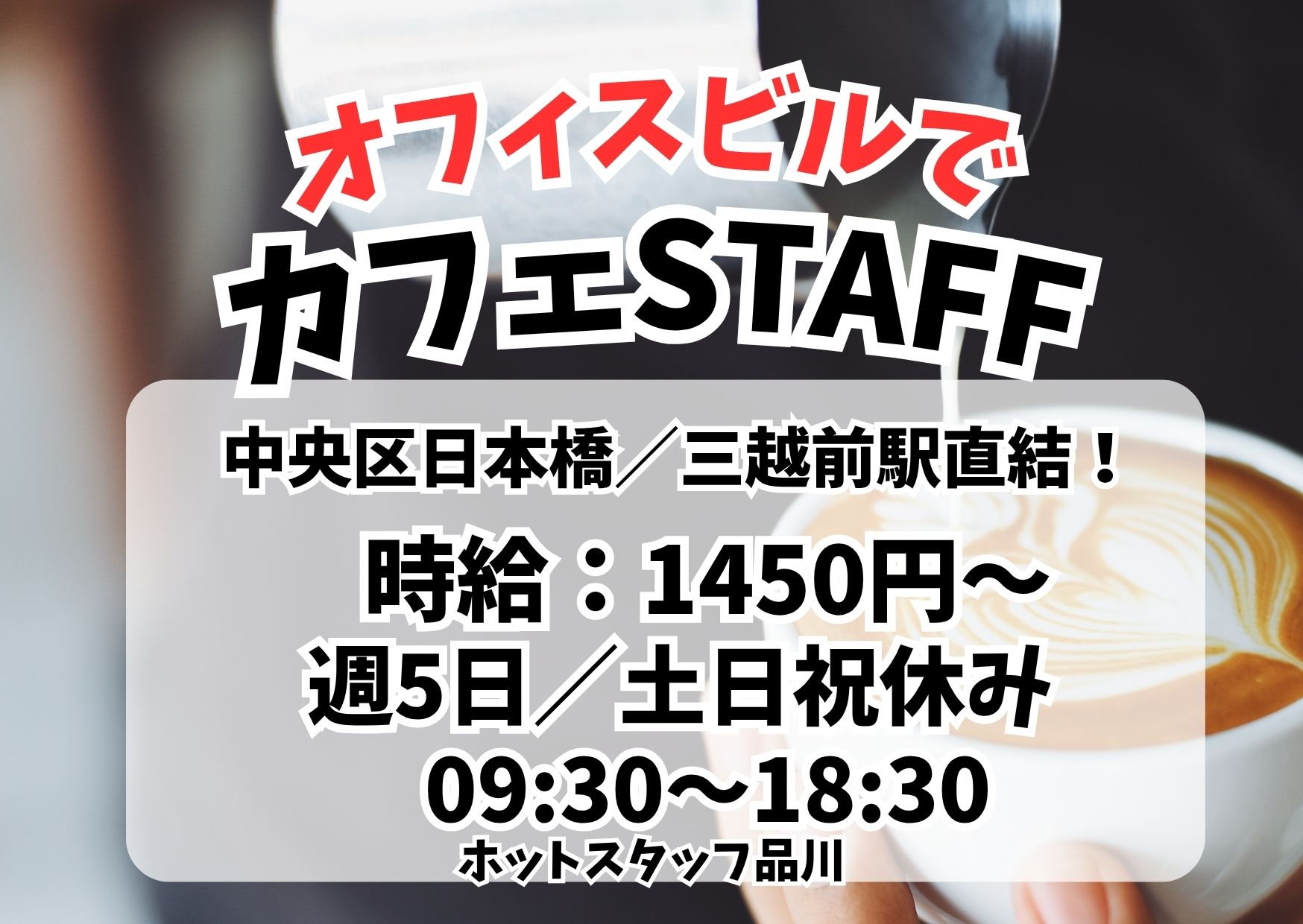 【平日のみ!週5日×実働8時間】食堂ビュッフェは無料!オフィスビルのカフェスタッフ!<時間の相談OK>