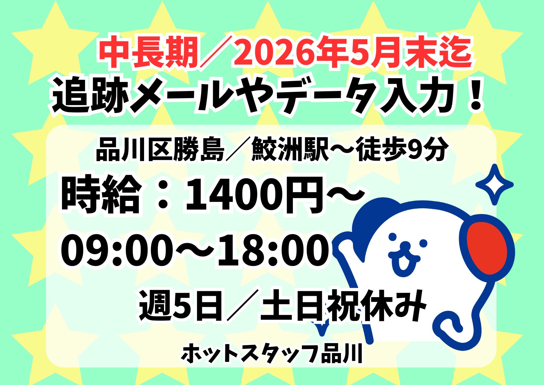 【11月中~2026年5月末迄】週5日/土日祝休み!荷物の追跡に関するメール送信や簡単なデータ入力・データ加工業務!
