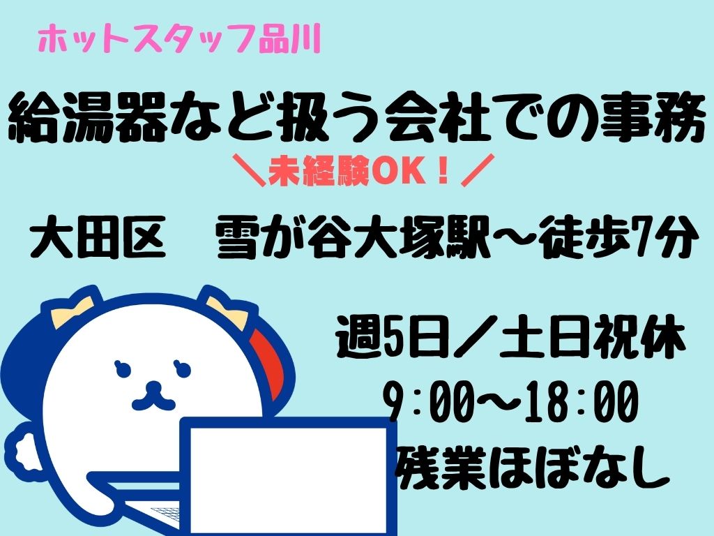 【週5日/土日祝休み/未経験OK!】給湯器やガスの交換工事を行う会社での事務業務!<ネイル、ピアスOK!>
