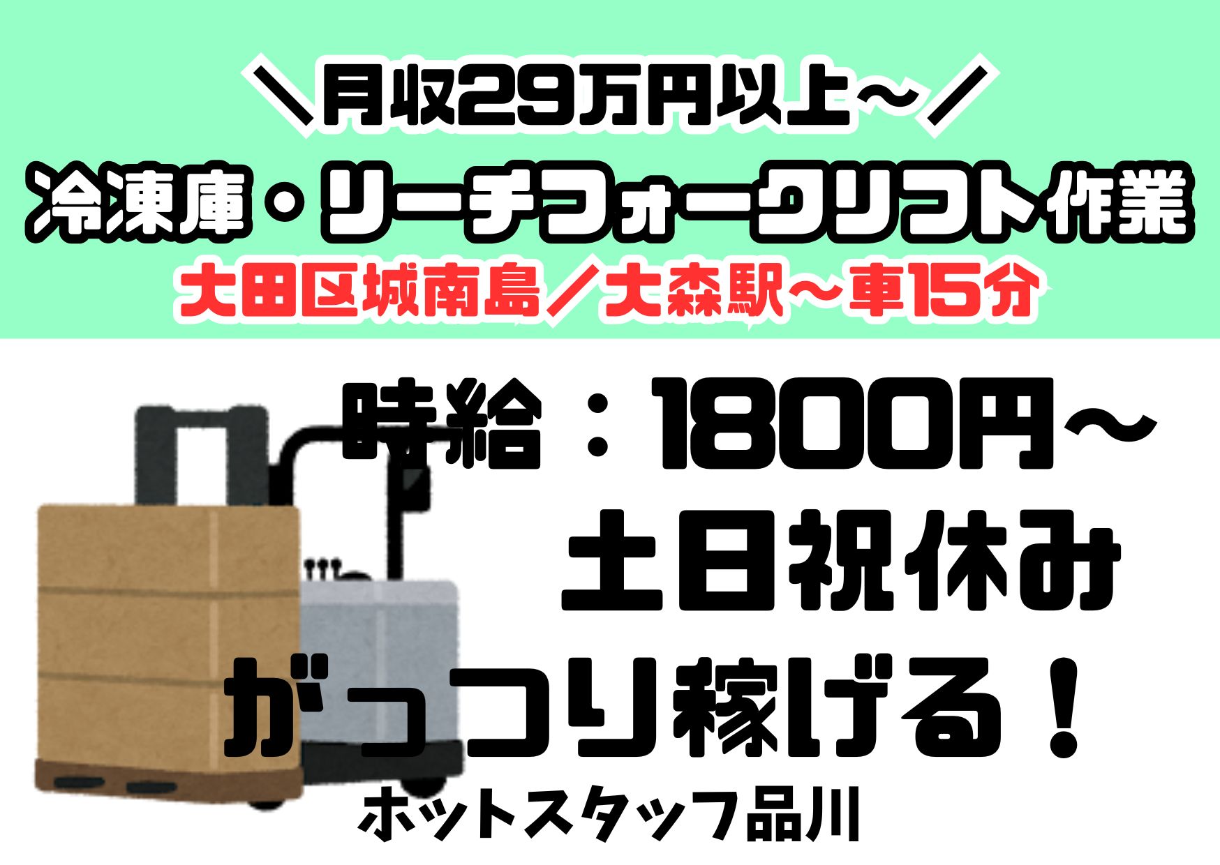 【月収例】¥1800×実働7.5H×22日=月収29万7000円~