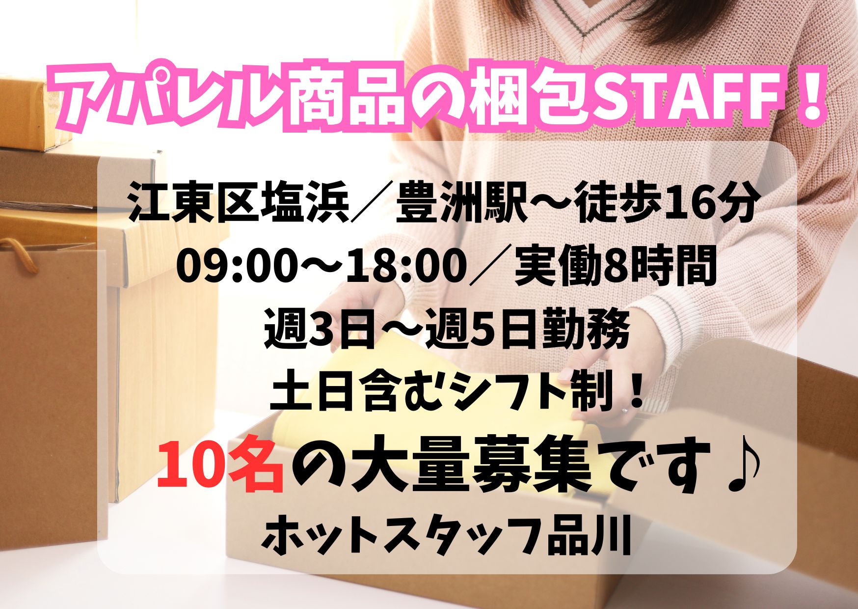【職場見学できます】週3日~週5日!シフト制!アクセサリーやカバンなど!ブランド商品の梱包作業!
