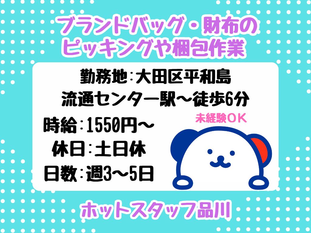 【月収28万以上可!】平日のみの週3日~週5日!OK!ブランド品のピッキングや梱包作業<未経験OK>