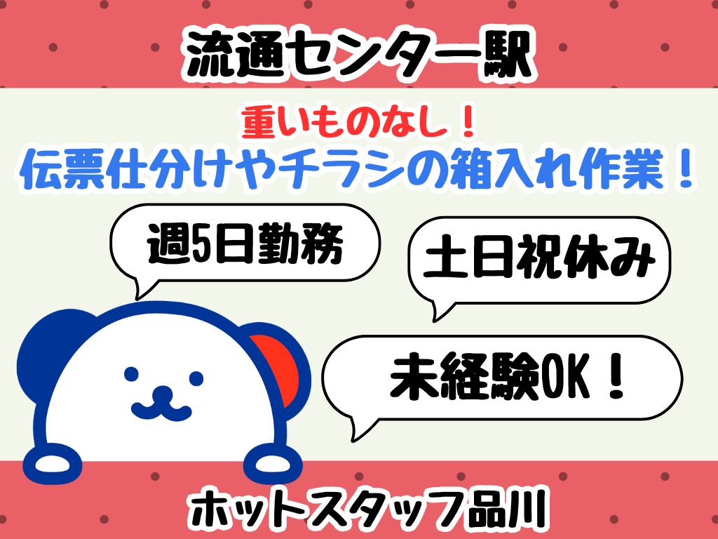 【重いものなし】週5日/土日祝休み!商品の箱にチラシを入れたり、伝票を仕分けるだけの軽作業スタッフ!