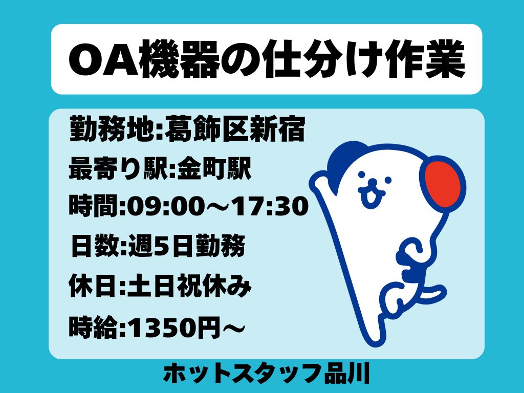 【週5日/土日祝休み/実働7時間で7時間30分分の給与!】OA機器・マウスやキーボードの仕分け作業!