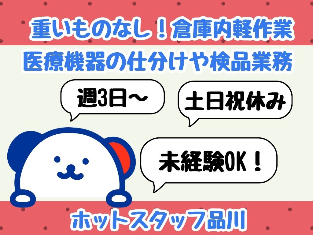 【細かい作業です!】週3日~OK!土日祝休み!医療機器の仕分け、検品、ラベル貼り!<未経験OK>