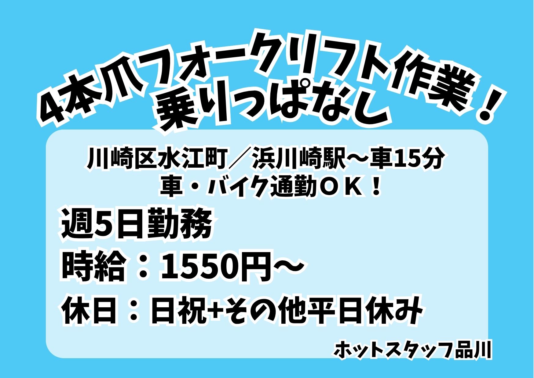 【ひたすら運ぶだけ!乗りっぱなし!重いもの持ちません!】週5日×日勤!4本爪フォークリフトで飲料の運搬!