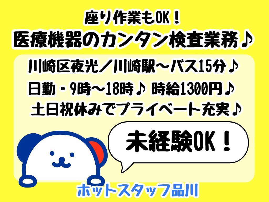 【重いものナシ×簡単軽作業】週4日~/土日祝休!酸素マスクや吸入器の部品をメンテナンス・検査!