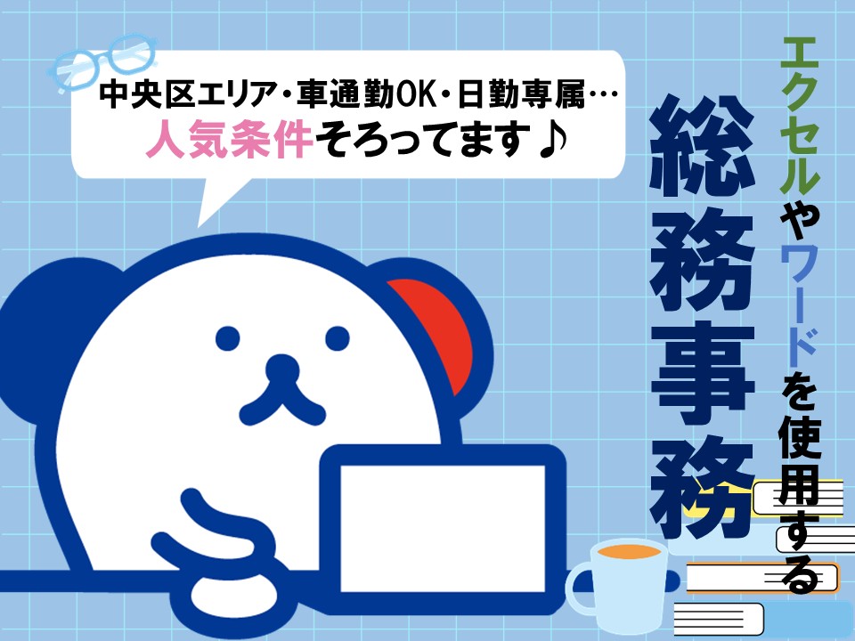 車勤務もOK♪中央区エリア・時給1200円・書類作成やお茶出し等の事務スタッフ